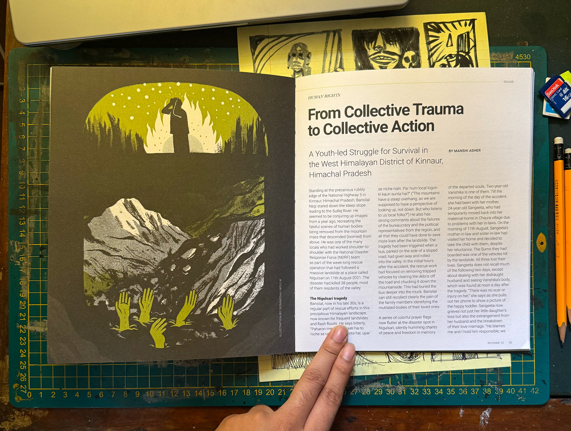 The article was about the landslides caused due to rampant construction of roadways and how that affected the mental health of the local people in Himachal Pradesh. 🚧