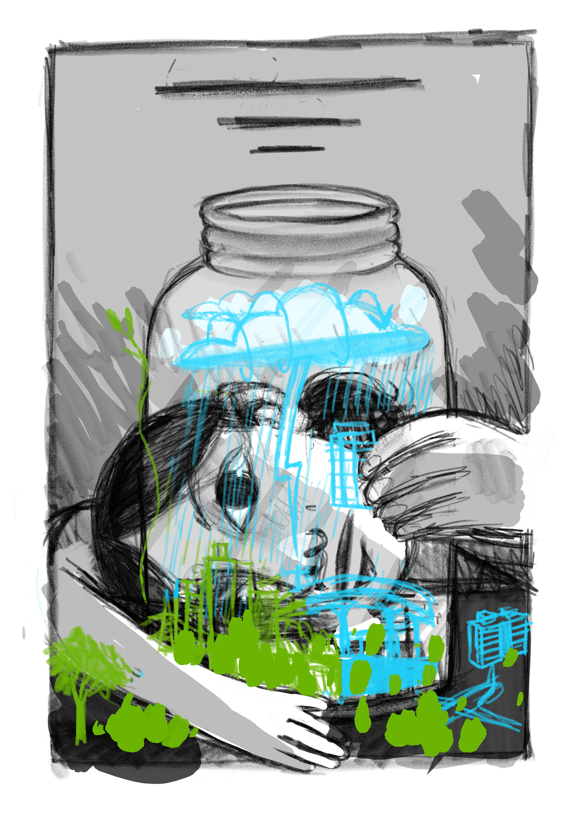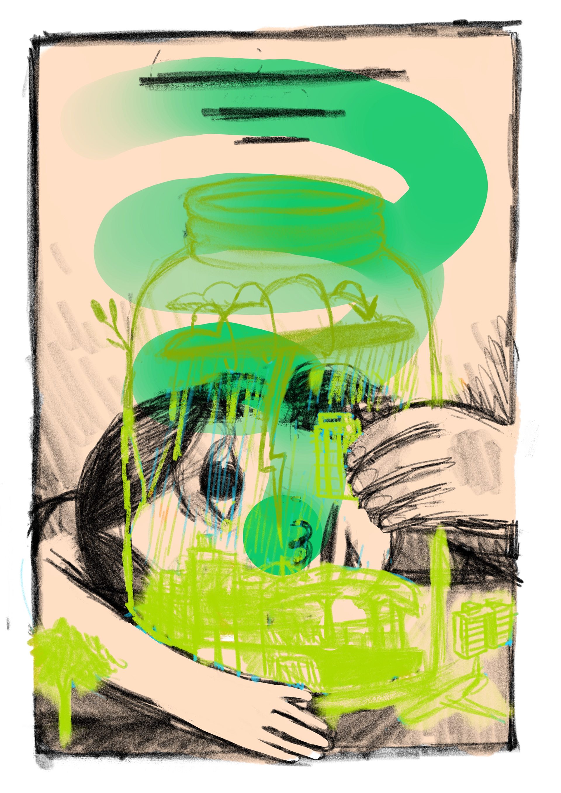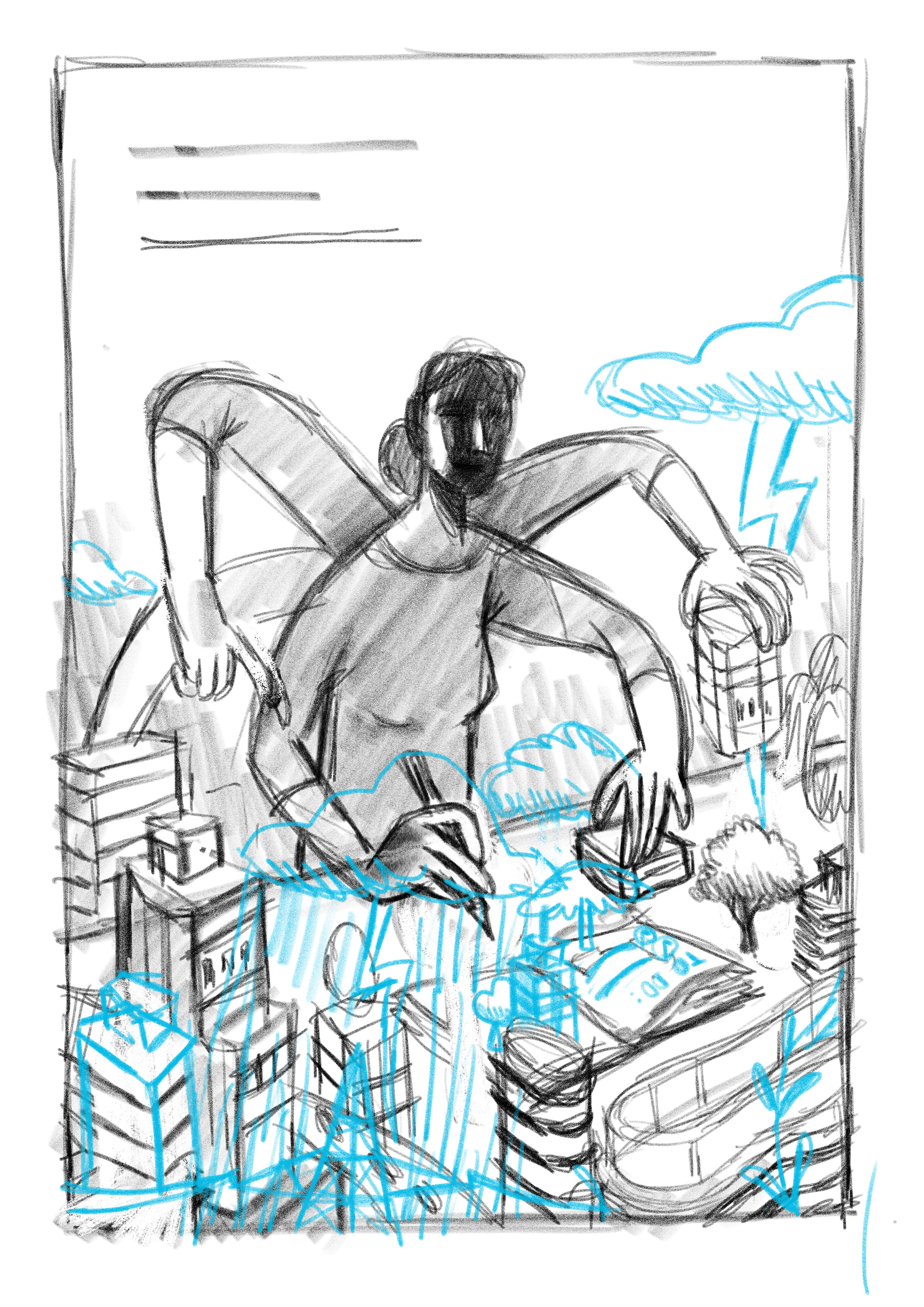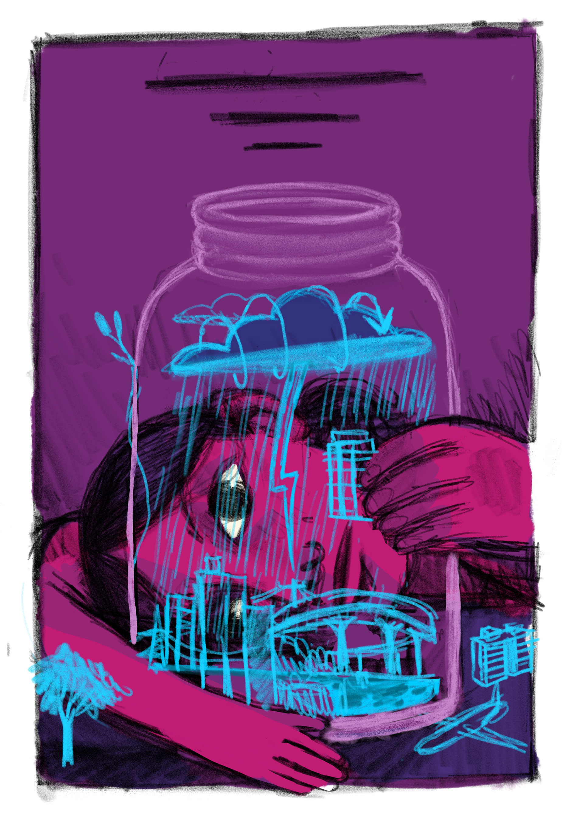 The thesis was about urban planning in cities and climate change. Supriya got in touch with me to help design and illustrate the cover for the thesis.