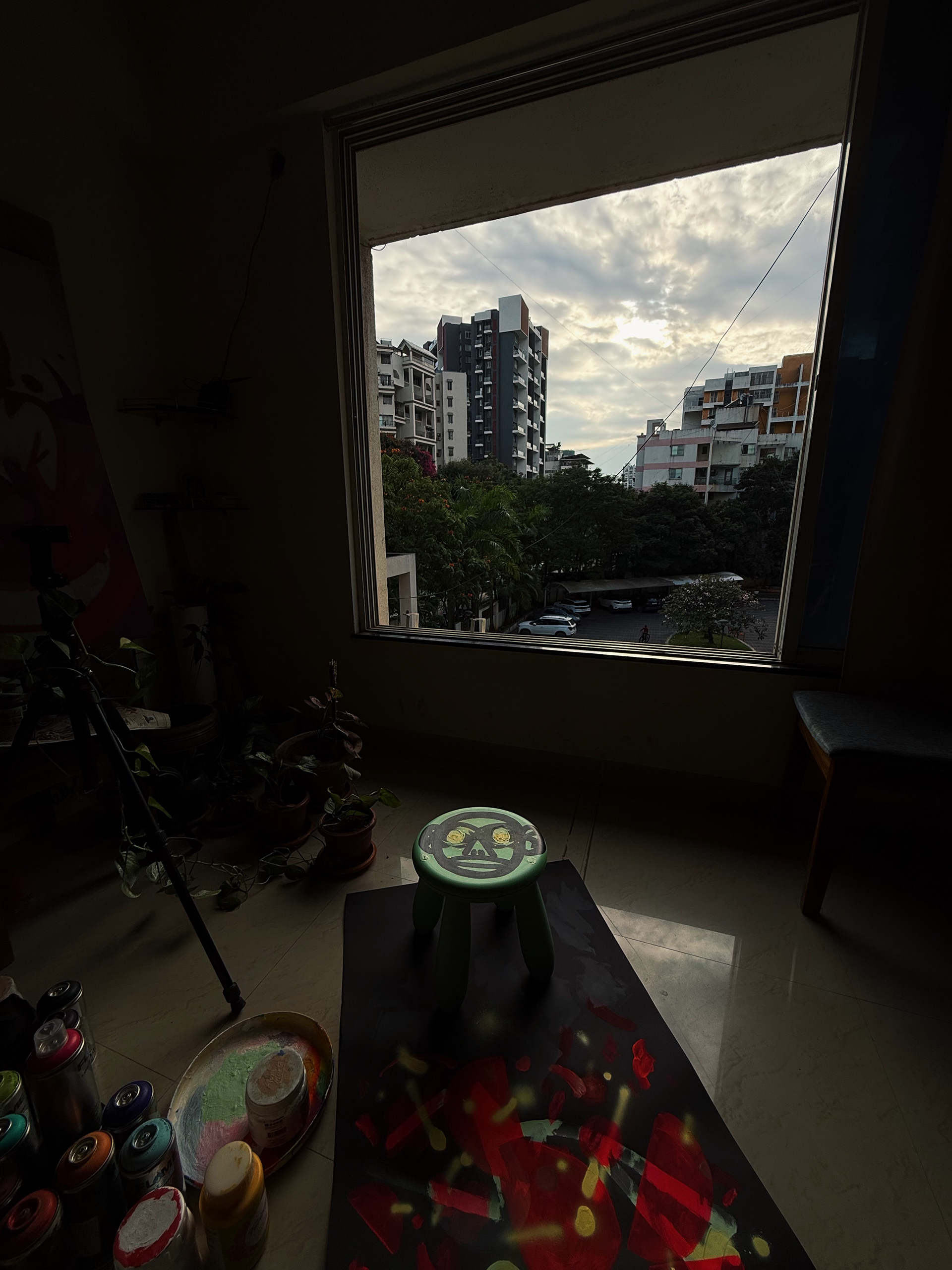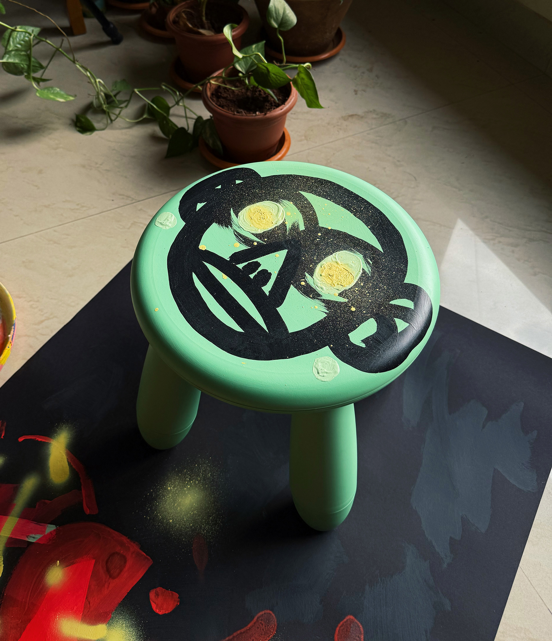 Acrylic, Aerosol and Varnish on Ikea MAMMUT stool.